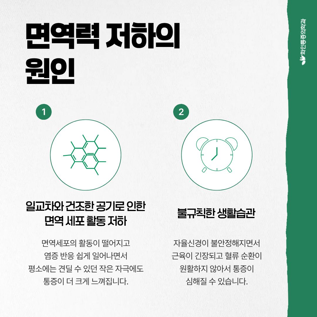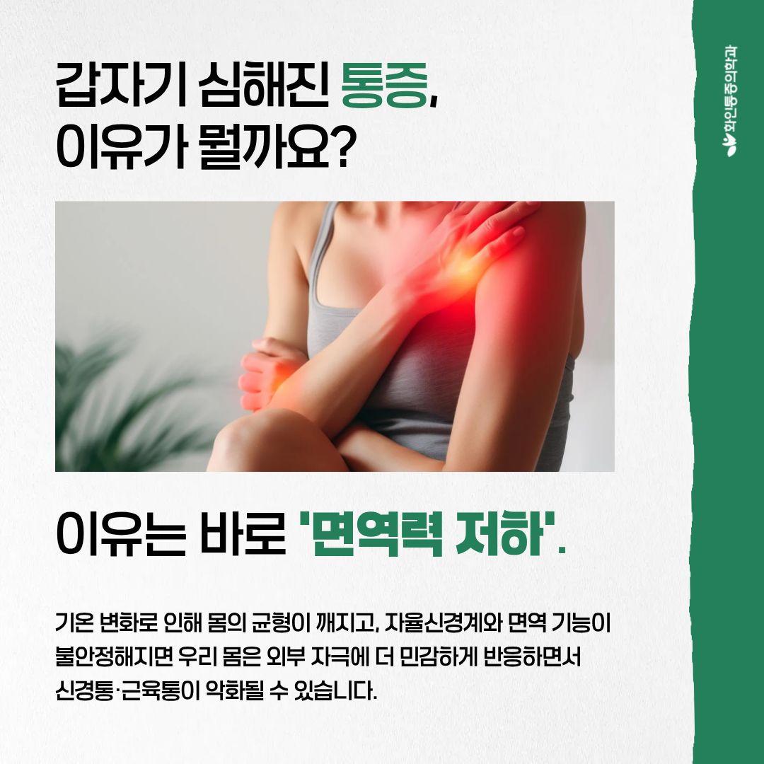 | 면역력 저하와 통증, 환절기에 더 예민해지는 몸의 신호 |