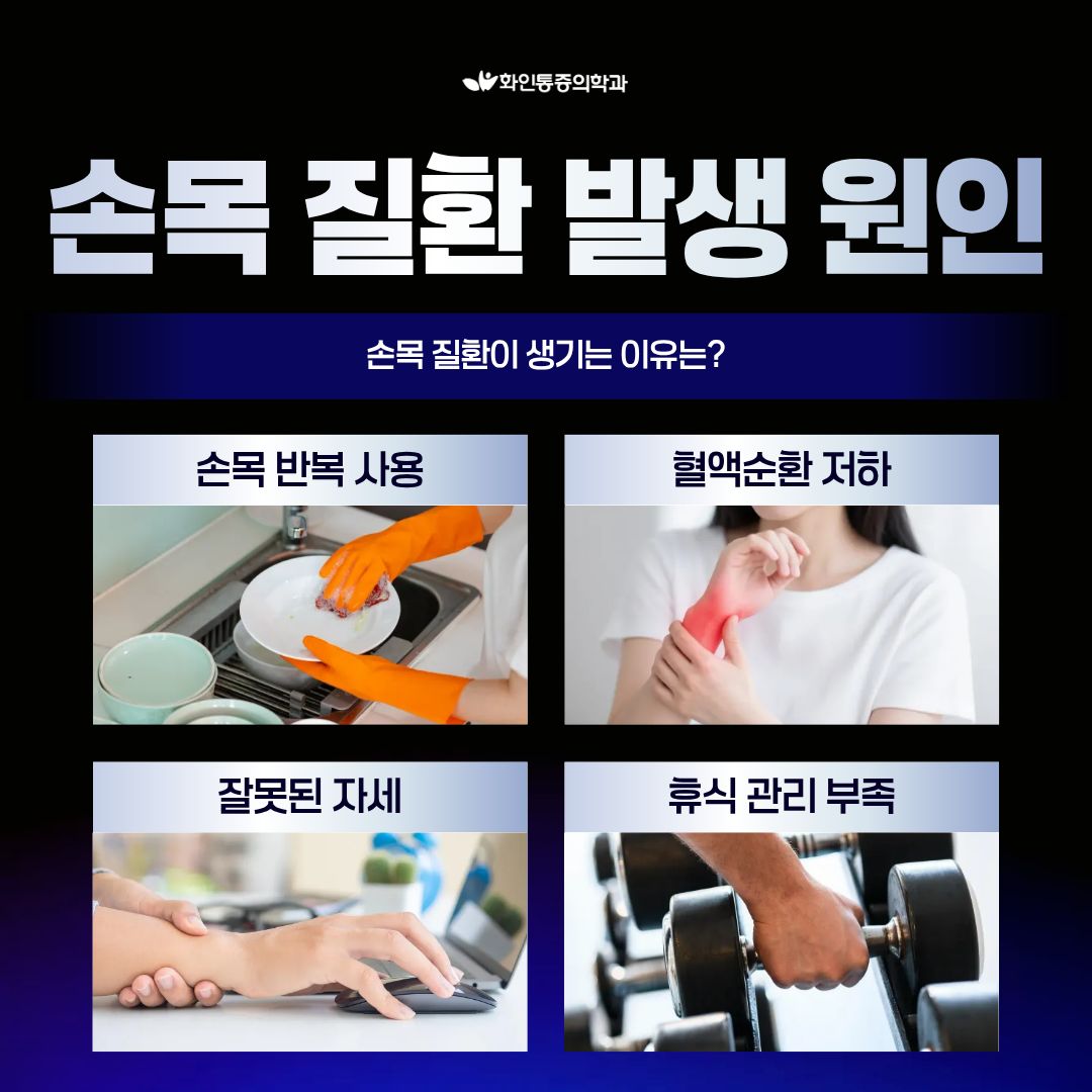 | 손목 통증, 반복된다면? 손목터널증후군 · 건초염 손목이 보내는 중요한 신호일 수 있습니다. |