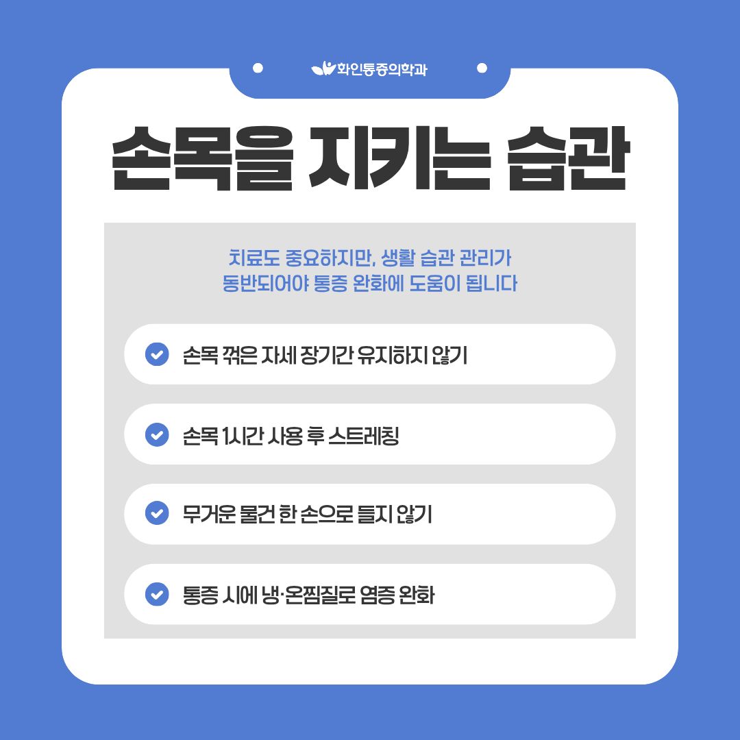 손목 통증, 반복된다면? 손목터널증후군 · 건초염 손목이 보내는 중요한 신호일 수 있습니다. |